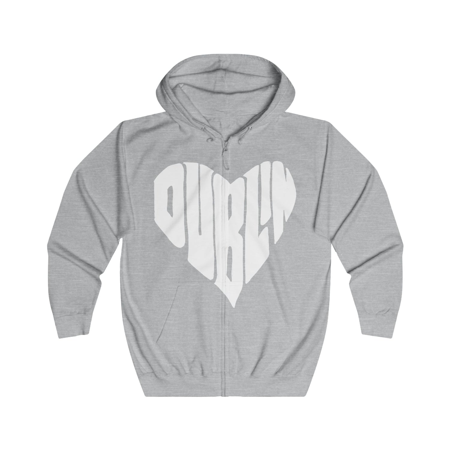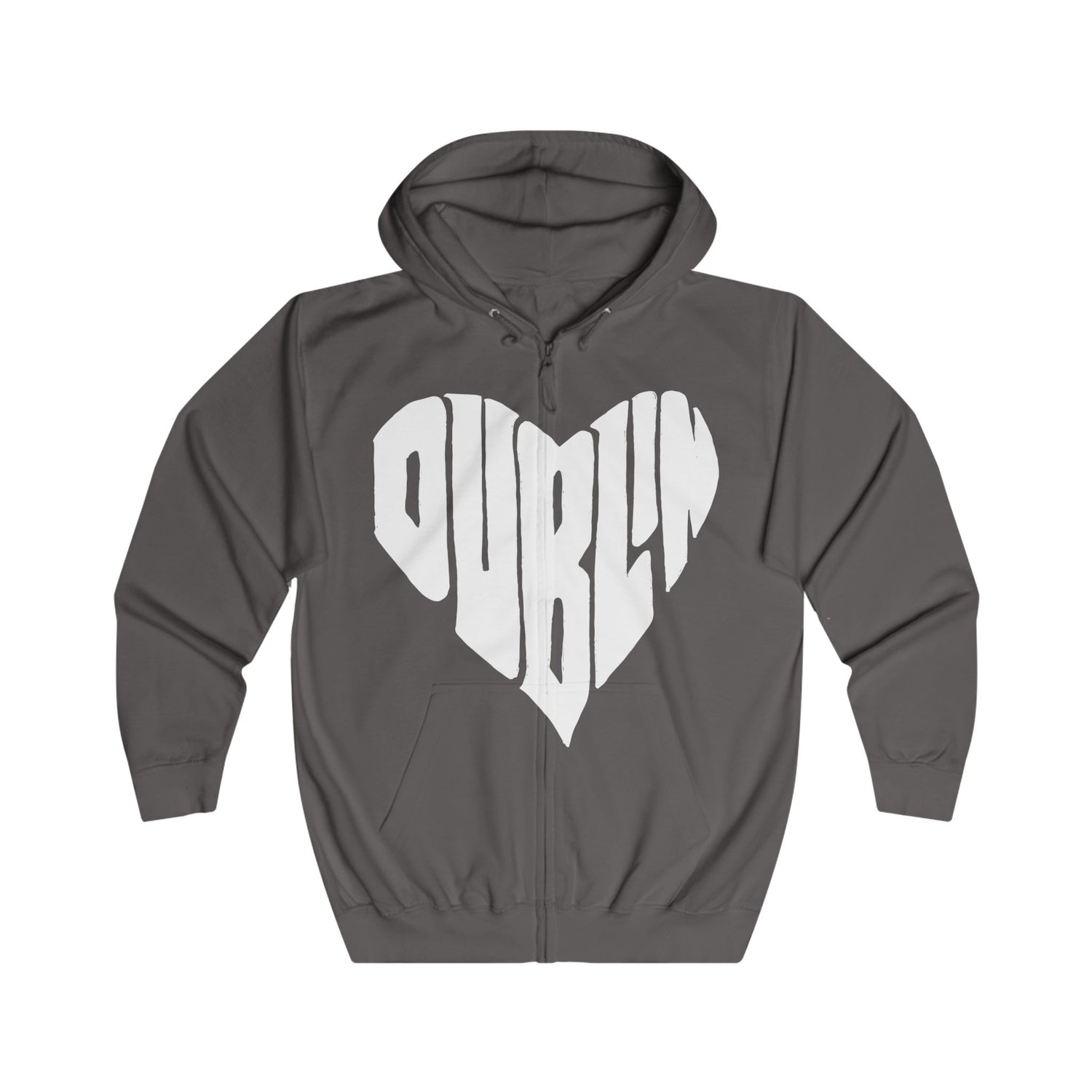 Slide into a soft, roomy zip hoodie that wears like a neighborhood emblem. A bold green silhouette of Ohio with a vintage, Old English “Dublin” across the chest — it reads like hometown pride with a bit of Irish flair. The medium-weight cotton blend holds its shape through cool mornings, dog walks, or coffee runs, while the roomy hood and kangaroo pouch keep you warm and hands-free. It’s the kind of layer you reach for when you want to feel grounded and a little nostalgic: familiar, comfortable, and quietly local.